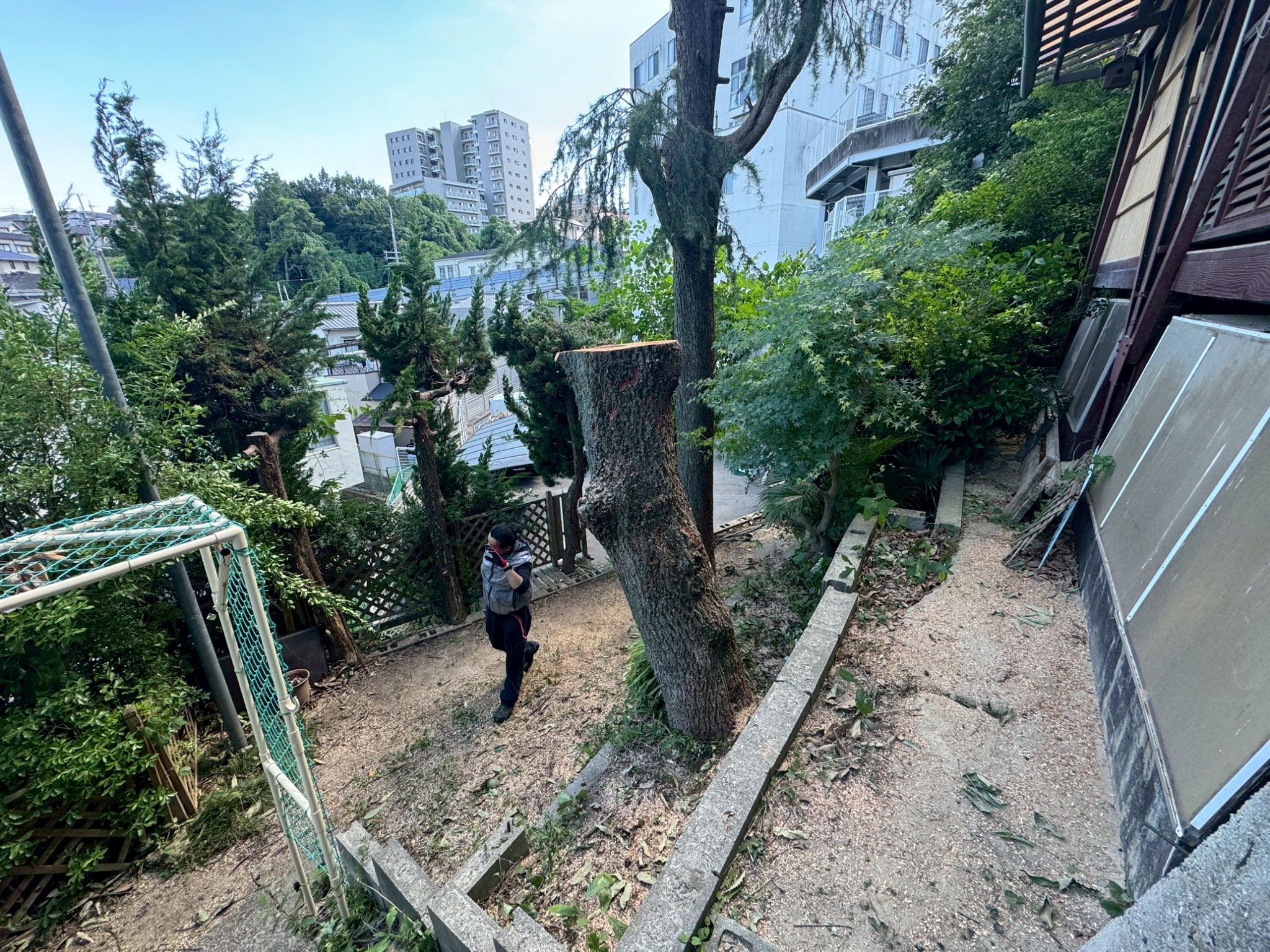 吹田市のI様から、「裏庭にある大きな木を伐採したい」とのご依頼をいただきました。