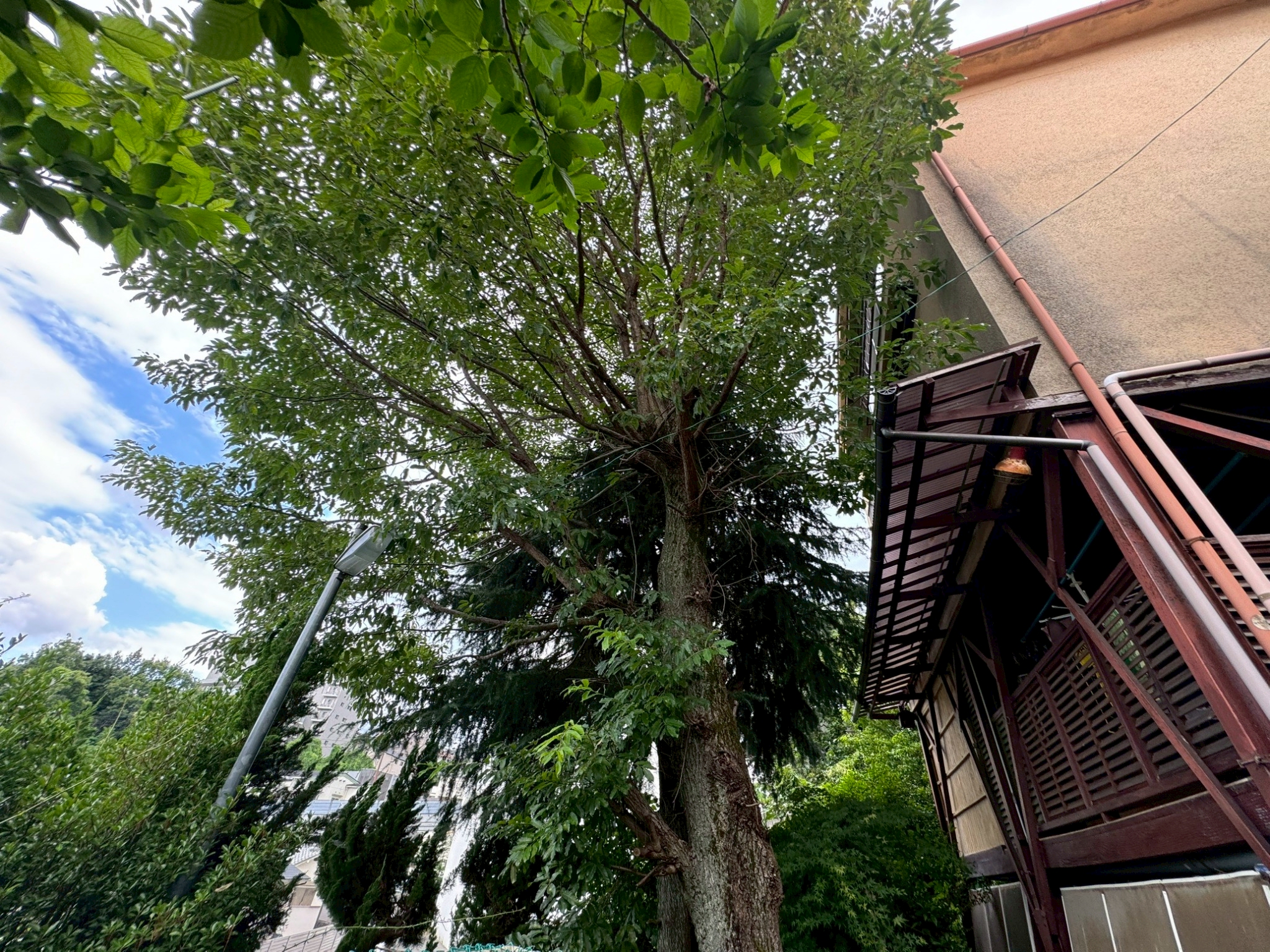 吹田市の管理会社様より、「幹も太く高木になりすぎている木がある伐採してほしい。」とご相談がありました!